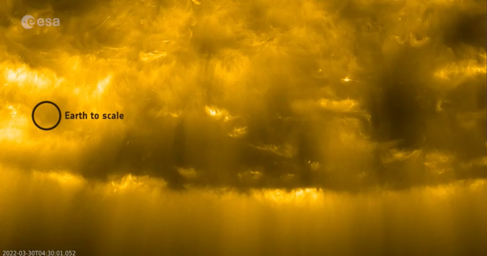 A recent image exposure taken by ESA/NASA Solar Orbiter spacecraft on March 30th, 2022 has just been released from when the spacecraft approached its closest distance to the Sun yet.